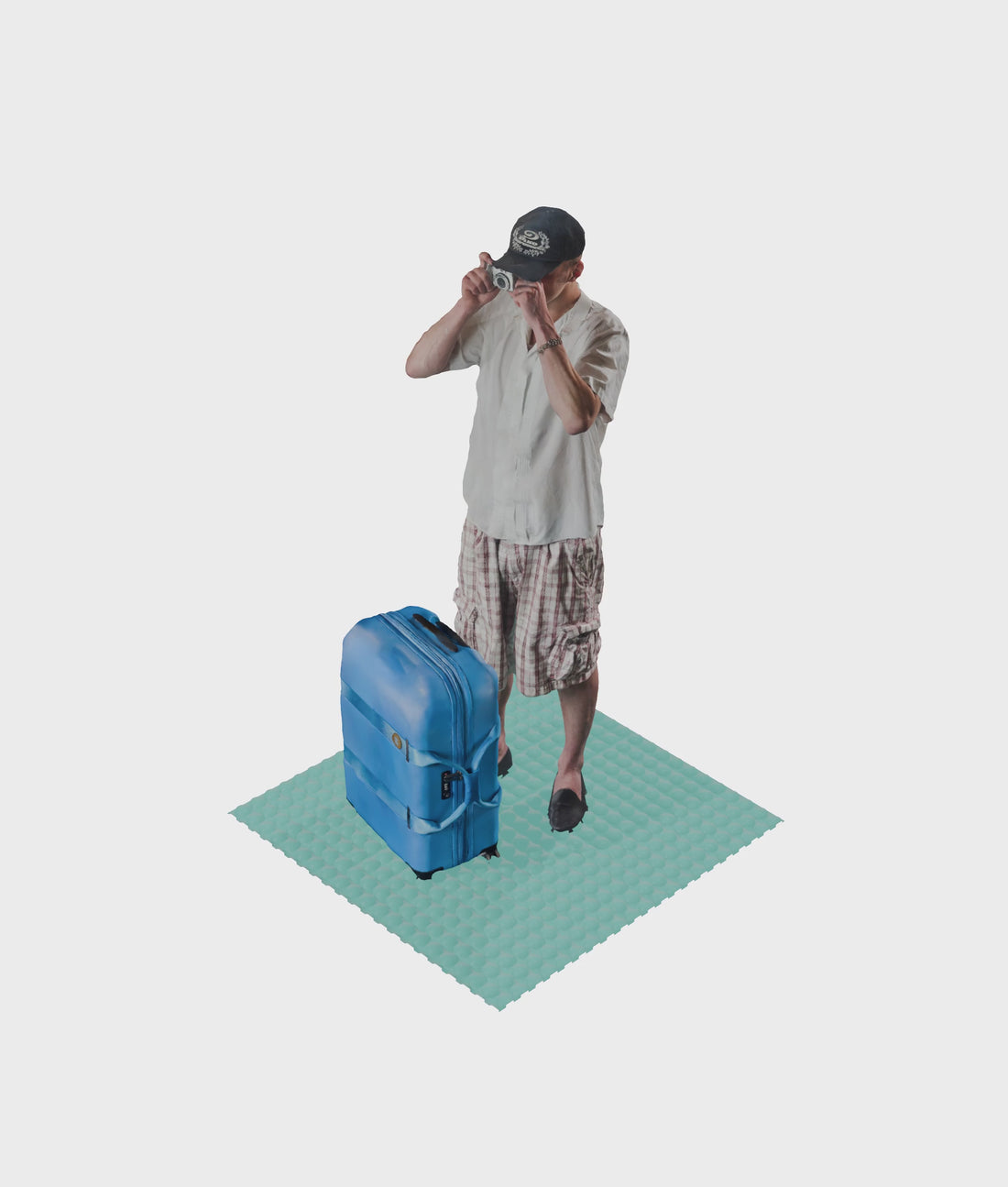 A check-in suitcase made from a durable polycarbonate outer shell. Equipped with an in-built TSA-approved lock.